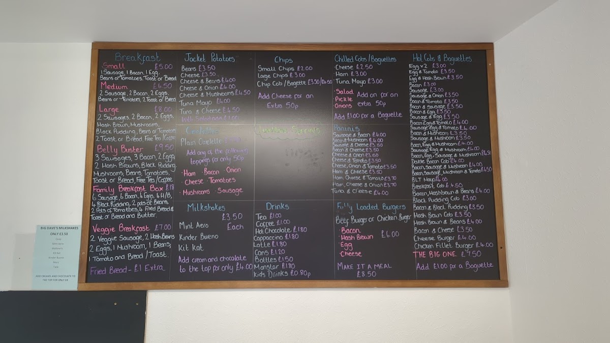 Welcome to Big Dave's Cafe, nestled at 1 Newport St, Leicester. This charming cafe excels in delivering hearty comfort food that satisfies every appetite. Their menu features a variety of jacket potatoes topped with delightful options like Cheese, Tuna Mayo, or Beans, all starting at just £4.00.